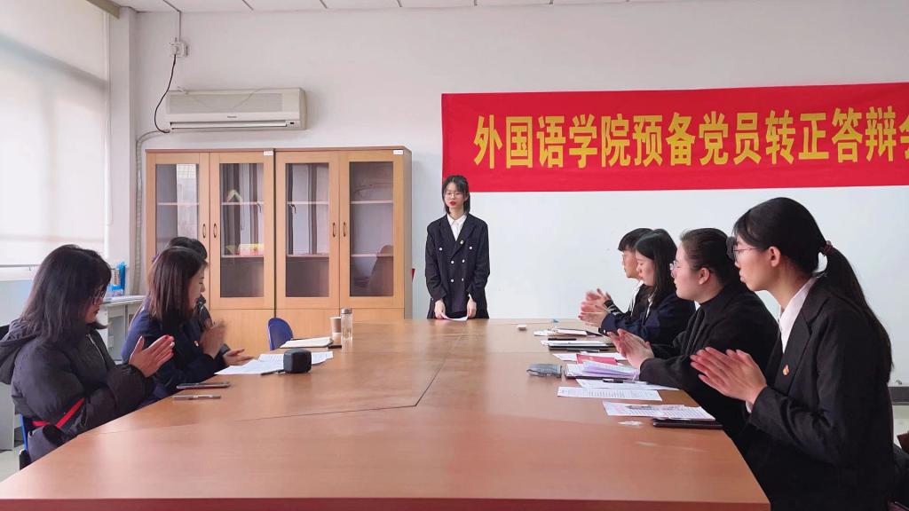 答辩会分为个人汇报、现场问答、评议三个环节,参加答辩的预备党员就预备考察期的思想、学习、工作等方面情况进行了详细汇报,结合自身实际阐述了如何做到习近平总书记对青年提出的五点要求,如何坚定中国特色社会主义共同理想,并积极开展自我批评。