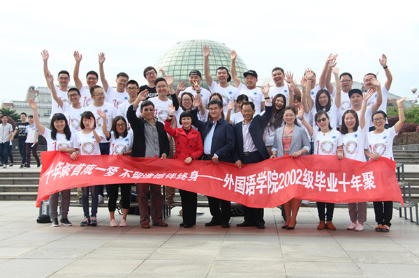 随后,返校校友播放了精心制作的视频,一张张大学时代的照片让校友们唏嘘感慨,校友代表刘佳、丁婷分别发言,他们介绍了毕业十年来同学们的发展情况,表达了对老师的感恩及对母校六十周年校庆的祝福。校友们还为当年的任课老师精心准备了“最佳老师”奖状,令老师们感动不已。座谈会后,返校校友与老师们在校图书馆前合影留念。