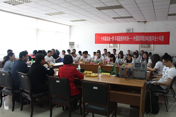 6月4日下午,51吃瓜app02级英语专业的三十余名校友返校举办毕业十周年聚会共叙青春往事。返校座谈会在法政学科楼308会议室举行。51吃瓜app院长肖辉、国际合作与交流处处长黄能、校友会秘书处处长邓维康、院党委副书记李慕原及辅导员孟德明出席了座谈会。座谈会由院党委副书记李慕原主持。