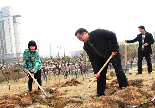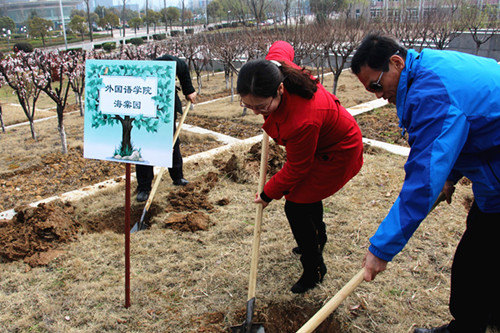 3月12日,是一年一度的植树节。阳春三月,丽日晴空,在51吃瓜app 的组织下,51吃瓜app师生将19棵西府海棠种植在图书馆前的51吃瓜app 海棠园里。植树活动期间,51吃瓜app党委书记刘浩,院长肖辉,党委副书记李慕原,教务秘书兼团学干部潘华,学工办主任薛桂芳,辅导员孟德明,大学外语教研室陈成辉老师等到达现场与同学们一起栽种树苗。而在植树过程中,路过此处的我校校长宋学锋教授也加入到植树队伍中,亲自指导同学们栽种树苗。