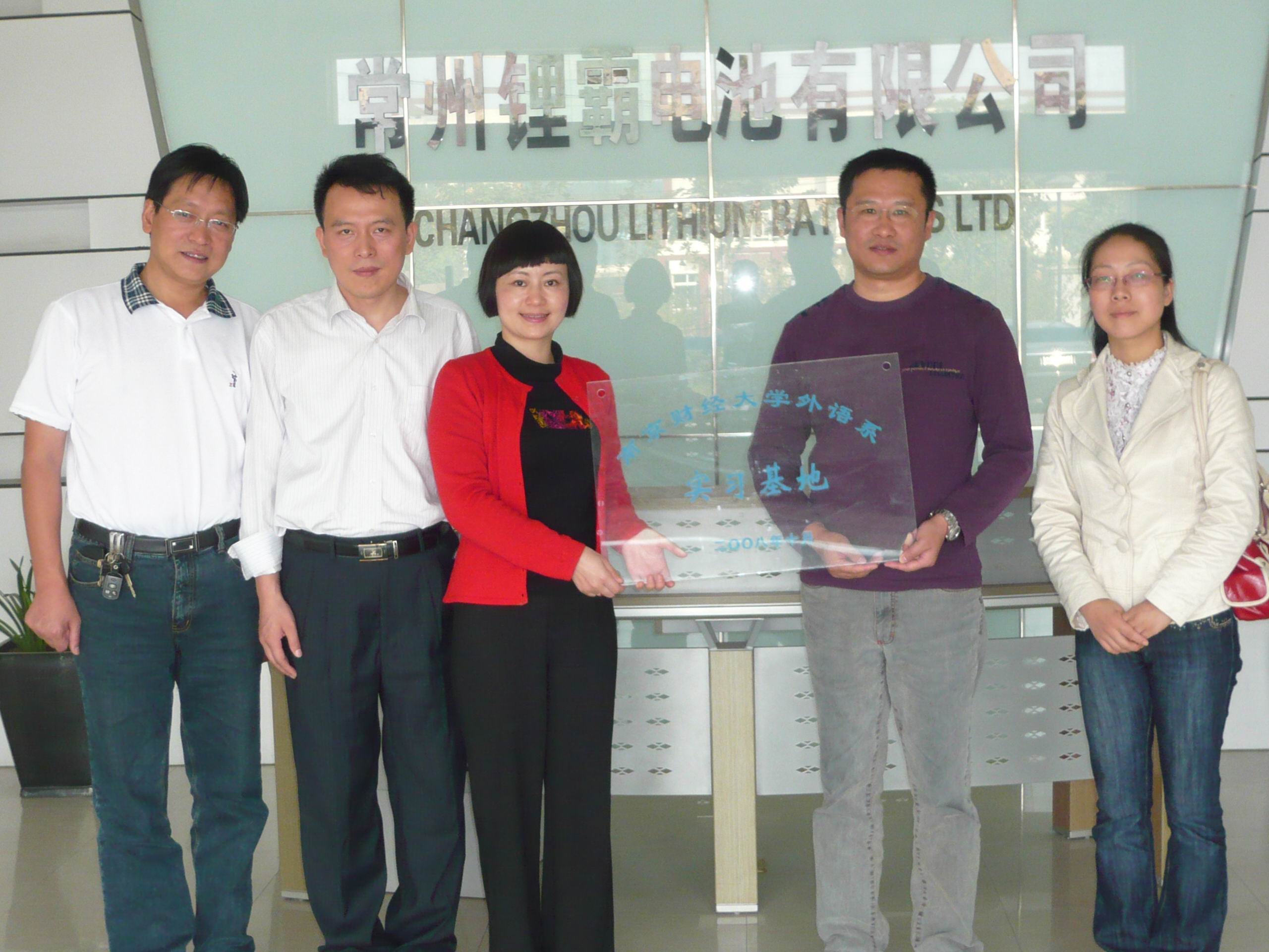 2008年10月14日,外语系党总支副书记、副主任肖辉教授、副主任孙勇彬副教授和团总支书记金立林老师3人一行来到江苏省常州市高新区为我系新建立的两个校外实习就业基地(常州市普今集团有限公司和常州锂霸电池有限公司)举行了挂牌仪式。
