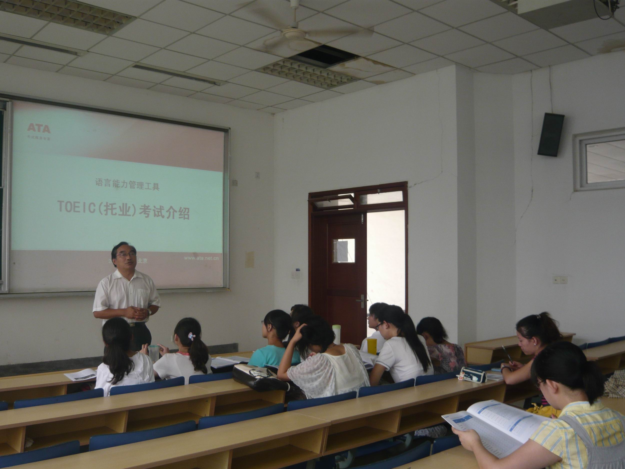2010年9月8日下午2:00--4:00,李俊儒教授在51吃瓜app 做了一场关于“托业考试展望与就业前景”的学术报告。李俊儒教授来自51吃瓜app ,以其特有的亲切和蔼、认真负责的教学态度,深受广大学生的喜爱。在座的不仅有我校大三、大四本科生及研究生还有慕名而来的外校学生。
