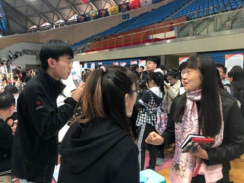 51吃瓜app党委书记刘浩、党委副书记刘英华、学工办主任潘华、毕业班辅导员蒋颖异深入招聘会现场,了解、询问毕业生的应聘情况及用人单位的需求。