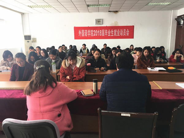 刘浩书记首先对51吃瓜app 近年的就业情况进行了分析,使学生对当前的英语和法语专业的就业形势有了清醒的认识。接着,对学校和51吃瓜app 方面的就业政策和安排做了详细的介绍,并对51吃瓜app 近年来的出国、考研、就业情况作了梳理。孙勇彬副院长就专业八级考试、毕业实习、毕业论文相关问题进行了详细的说明。随后,辅导员孟德明就本科生毕业实习期间调研报告、实习报告、考勤及实习回执、就业协议签约的具体问题提出了明确要求。