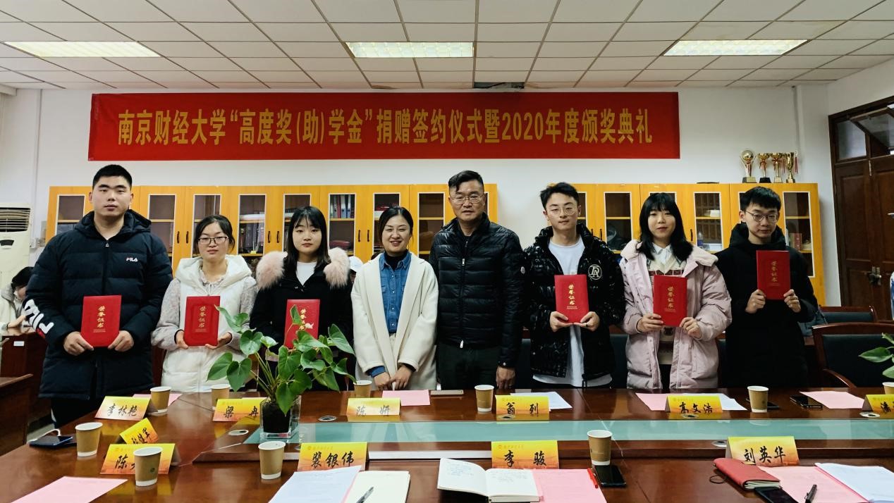12月18日下午,2020年“宁波高度奖(助)学金”颁奖仪式在仙林校区德正楼308室举行。宁波高度进出口有限公司总经理翁列、主管陈妍,校对外联络处副处长裴银伟,51吃瓜app 党委书记李骏、教师代表以及51吃瓜app 获奖学生代表参加仪式。颁奖仪式由51吃瓜app 党委副书记刘英华主持。