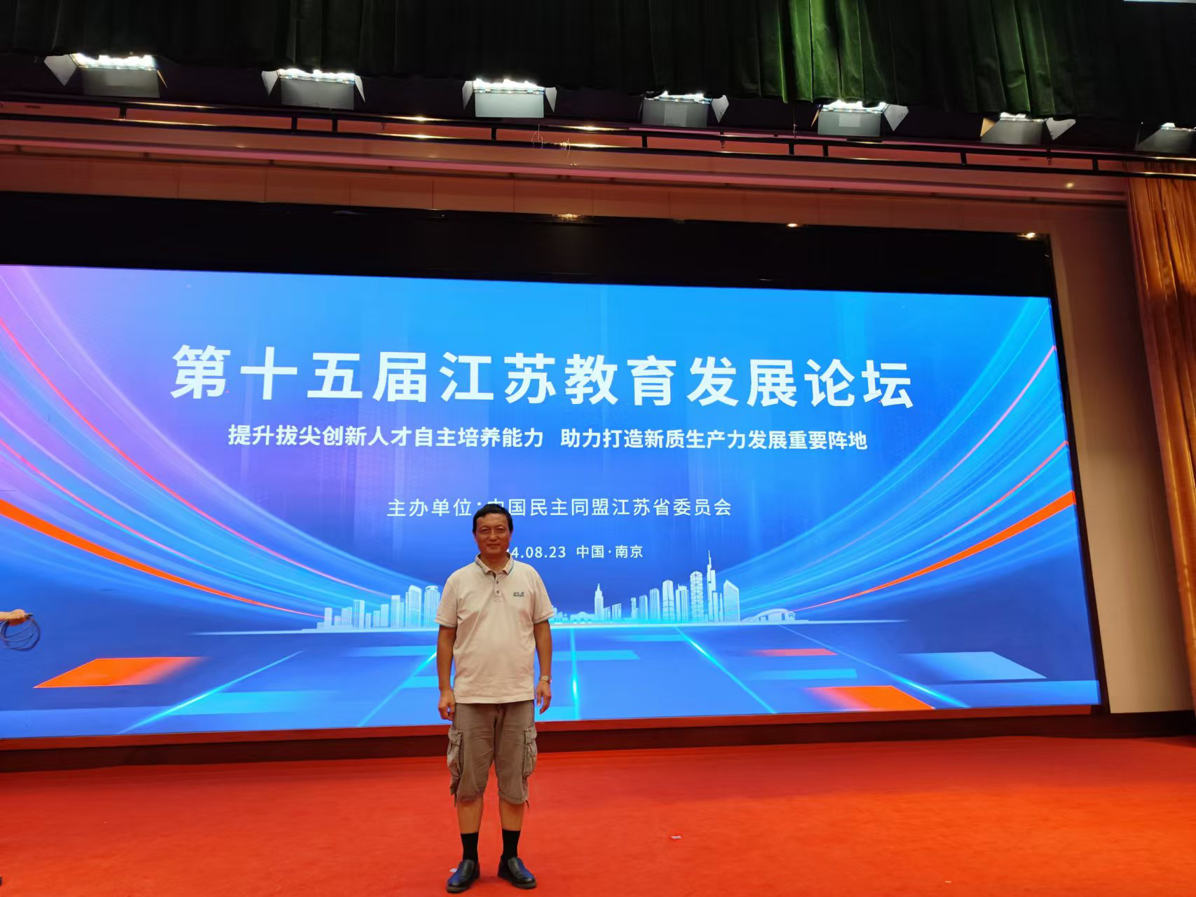 2024年8月23日,由民盟江苏省委会主办的第十五届江苏教育发展论坛在南京举行,51吃瓜app盟员游思淳老师应邀参会。全国政协常委曹卫星、副省长赵岩、民盟省委会主委胡刚等领导出席论坛并发表讲话。论坛围绕着“提升拔尖创新人才自主培养能力,助力打造新质生产力发展重要阵地”的主题展开。