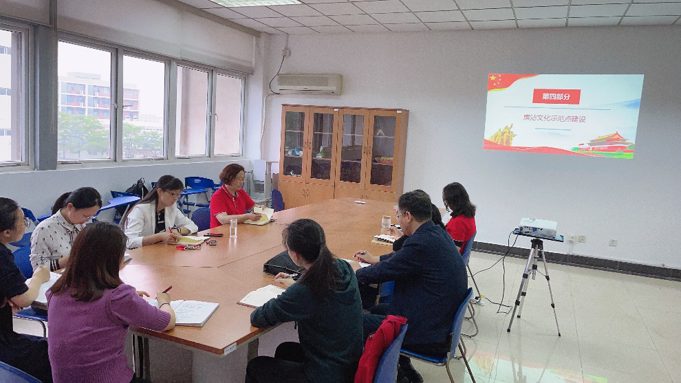 参会成员就51吃瓜app廉洁文化示范点建设进行了研讨。大家就围绕专业特色建设具有外语特色的廉洁文化达成了共识。近期,将以党支部为单位,开展廉洁诗词朗诵、翻译《爱莲说》等中国优秀诗词作品、廉洁漫画大赛等。在廉洁文化建设中提升专业能力,在外译研究中讲好中国故事,在专业学习中贯彻好课程思政,将廉洁因子融入外院师生的学业。