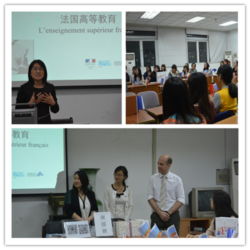 活动伊始,法国高等教育署南京办事处的蒋海燕老师为在座的同学们讲述了法国留学的相关情况,包括法国大学的学制、花费以及法国留学的专业事项等。她的介绍使在场学生对于法国这个浪漫的国度充满了憧憬,也使大家对留学法国的具体情况有了初步了解。