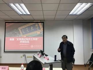 29 日晚上7点,交大传记中心主任刘佳林教授主持了简短的开幕式。传记中心创始人杨正润教授发表讲话。他说,21世纪是传记的时代,遗憾的是在我国每年虽有6000-10000部传记出版,但少有精品。他提出,传记写作人才是可以培养的,哥伦比亚大学、牛津大学早有先例,创建“文学传记写作工作坊”的目的就在此。他希望,未来能从工作坊诞生优秀的文学传记作家和传记精品。说到这里,他的声音高昂起来,眼睛里有无限的期许。