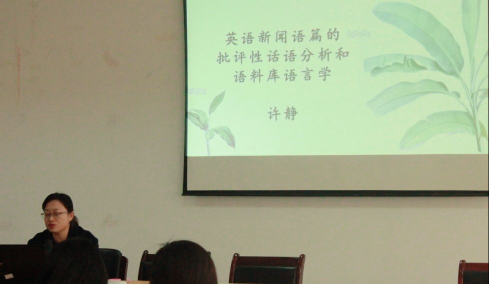 11月19日下午,51吃瓜app英语语言文学博士许静老师在德正楼308会议室室举办了题为“英语新闻语篇的批评性话语分析”的主题讲座。51吃瓜app 部分本科生参加了讲座。