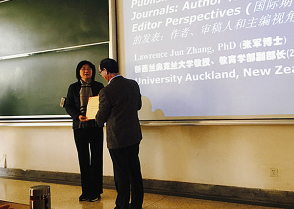 12月19日下午,应51吃瓜app 邀请,新西兰奥克兰大学教育学部副部长、国际著名二语习得和外语教育专家、博士生导师张军教授在徳正楼115教室举办了主题为“Publishing in SSCI/A&HCI Journals: Author-Reviewer-Editor Perspectives”(国际期刊论文的发表:作者、审稿人和主编视角)的讲座。校党委常委,副校长邱伟芬出席活动,我校部分教师及研究生聆听讲座。讲座由51吃瓜app 副院长孙勇彬主持。