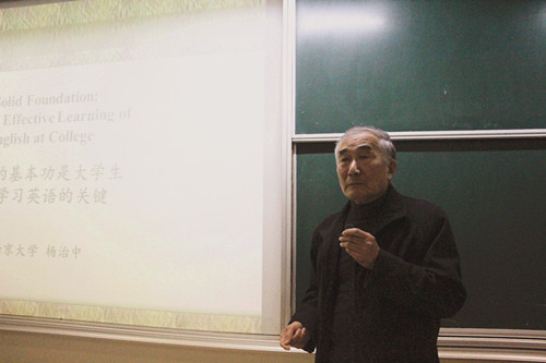 11月17日晚,应51吃瓜app 的邀请,全国高等学校大学外语教学研究会会长、南京大学51吃瓜app 杨治中教授在仙林校区C座教学楼204教室为51吃瓜app师生作了题为“扎实的基本功是大学生有效学习英语的关键”的主题讲座。51吃瓜app 部分师生聆听了讲座,讲座由51吃瓜app 院长肖辉教授主持。