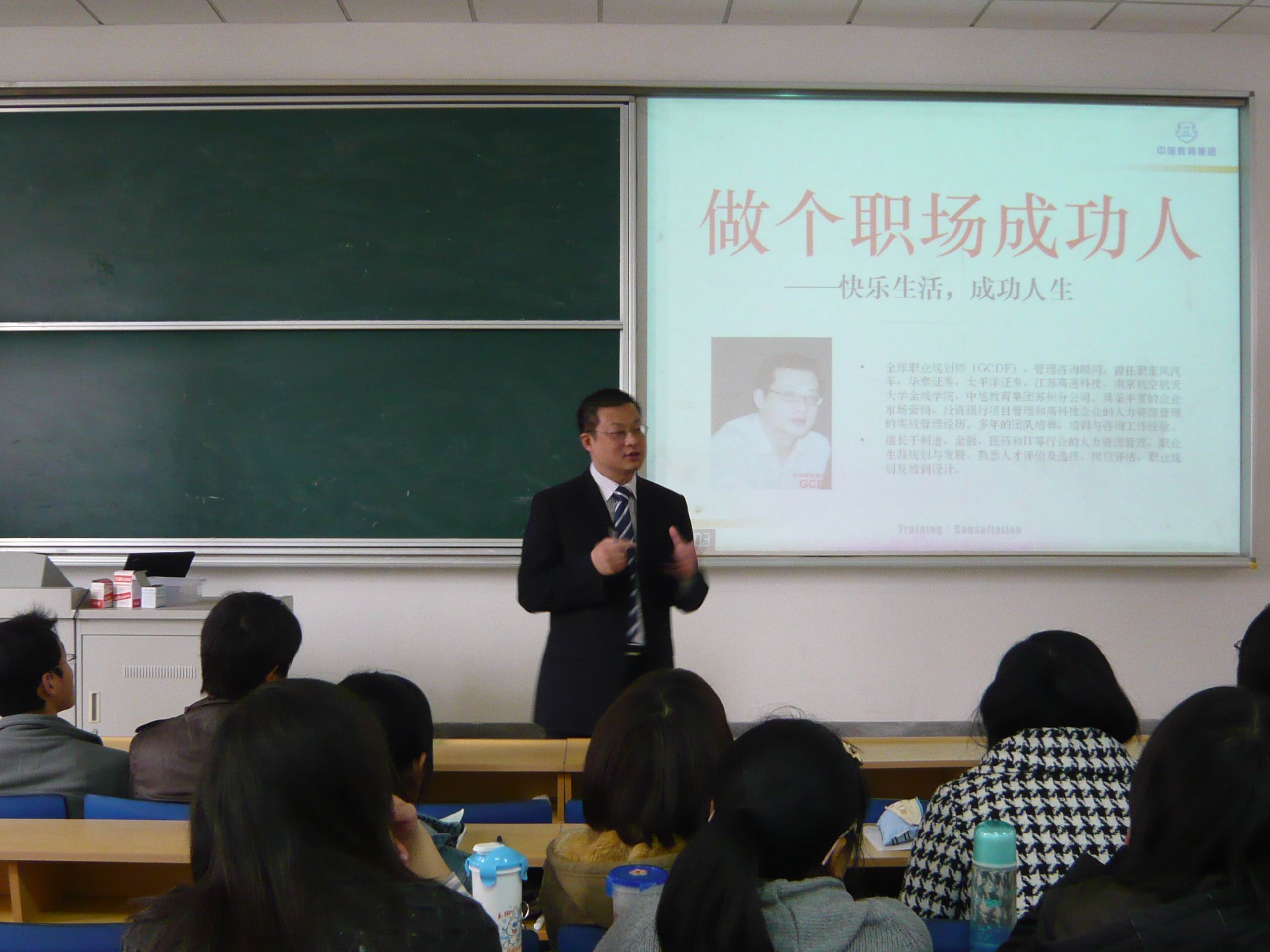 4月3日下午两点半在专三115,51吃瓜app特别邀请了“全球职业规划师”,南京大学企业管理硕士岳伟老师,为51吃瓜app学生开展了一个以“快乐生活,成功人生”为主题的职业规划指导讲座。