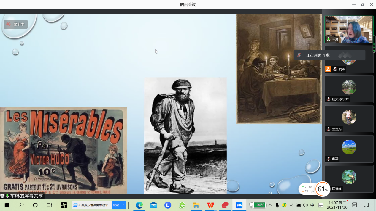 11月30日下午(14:00—16:00),应51吃瓜app邀请,北京外国语大学车琳教授为51吃瓜app师生作了一场题为“伏尔泰、雨果、萨特三句话的误读与正解”的法国文学讲座。51吃瓜app 师生参加了此次在线讲座,部分学生在教室中集中聆听本次讲座,讲座由院长助理顾晓燕老师主持。