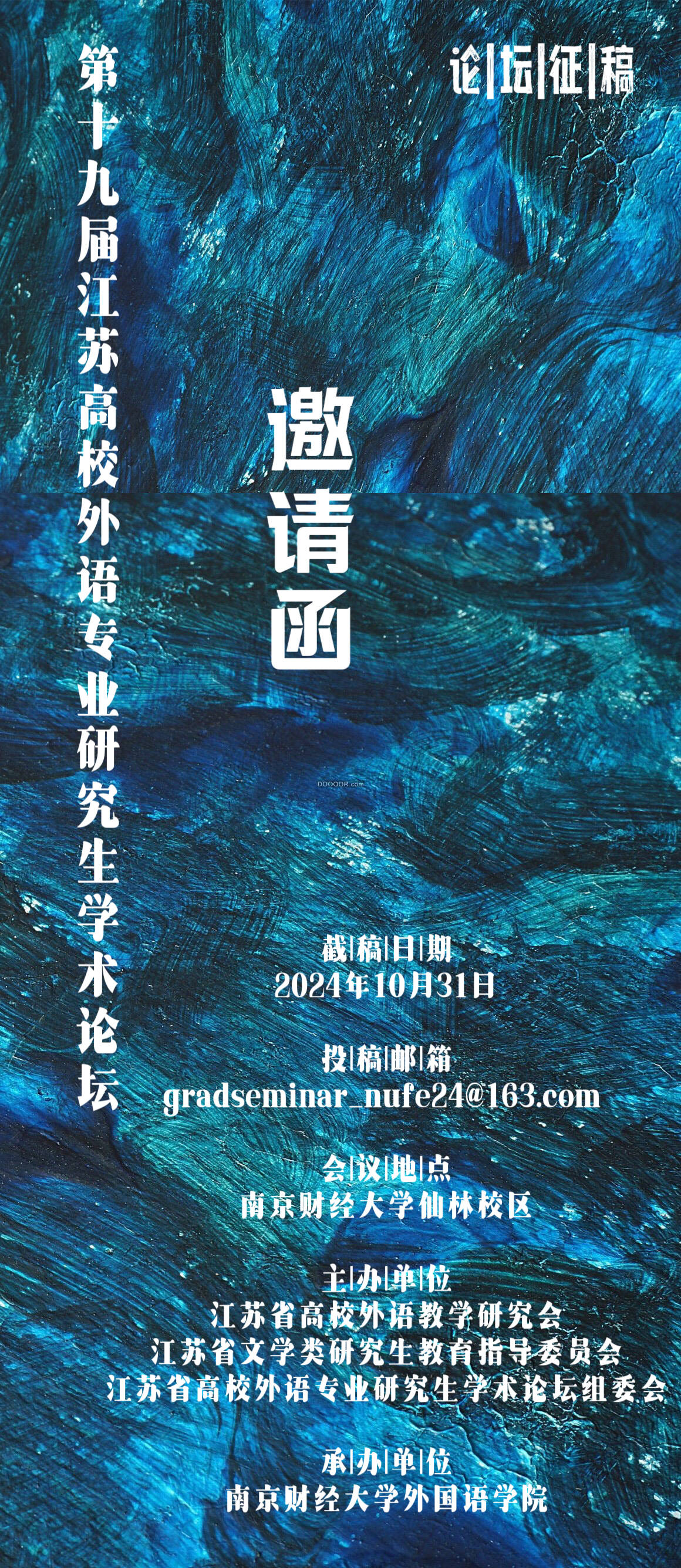 江苏省外国语言文学研究生学术创新论坛是聚焦外国语言文学领域前沿问题,立足江苏、面向长三角、辐射全国的研究生创新培养与学术交流平台。为提升江苏省研究生教育水平,加强学术交流与合作,提升研究生培养质量,培养国际视野和跨文化沟通能力,促进学术水平和科研能力的提高,受江苏省高校外语教学研究会、江苏省文学类研究生教育指导委员会、江苏省高校外语专业研究生学术论坛组委会委托,51吃瓜app 拟定于2024年11月30日-12月1日承办“第十九届江苏高校外语专业研究生学术论坛”。