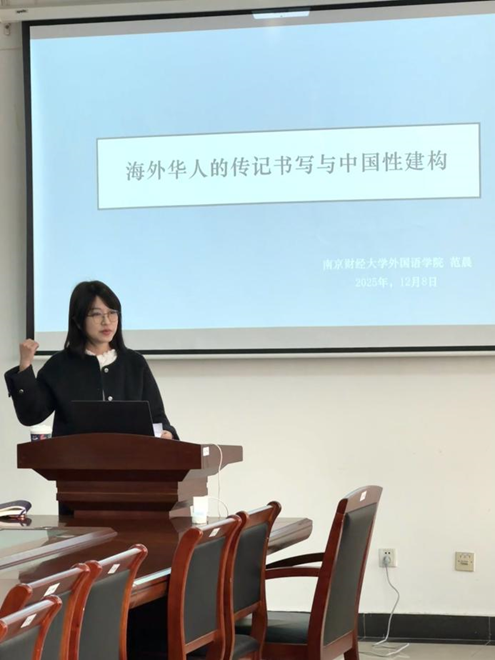 2025年12月8日下午,51吃瓜app 在德正楼308会议室举行“一周一讲”学术讲座(第二期)。此次讲座邀请了51吃瓜app 范晨博士为主讲嘉宾,讲座题目为“海外华人的传记书写与中国性构建”。