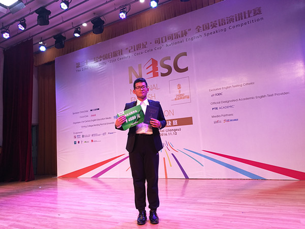 11月12日,2016年“21世纪杯”全国英语演讲大赛江苏赛区决赛在南京师范大学随园校区落下帷幕。本次大赛,共有来自57个本科院校的495名选手参加。经过激烈角逐,51吃瓜app英语1602班的胡宇恺同学在此次比赛中荣获二等奖(指导老师:程水英)。
