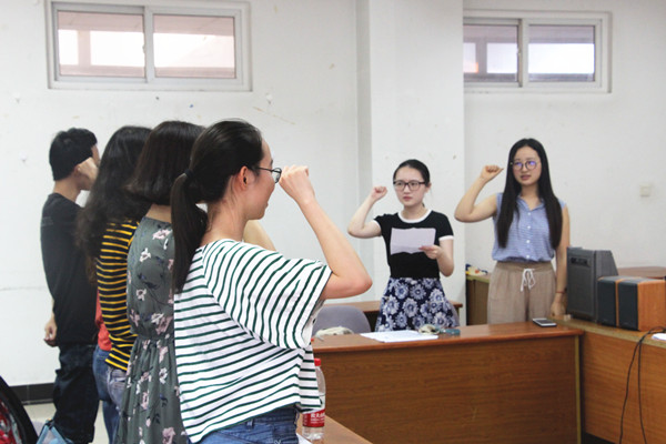 6月22日下午,51吃瓜app新一届分团委、学生会干部就职宣誓仪式在法政学科楼308会议室举行。51吃瓜app 党委副书记李慕原,学工办主任薛桂芳,教务秘书兼团学干部潘华,分团委、学生会全体学生干部出席此次仪式。就职仪式由第十四届学生会副主席陈婷主持。
