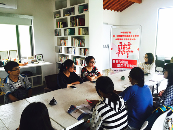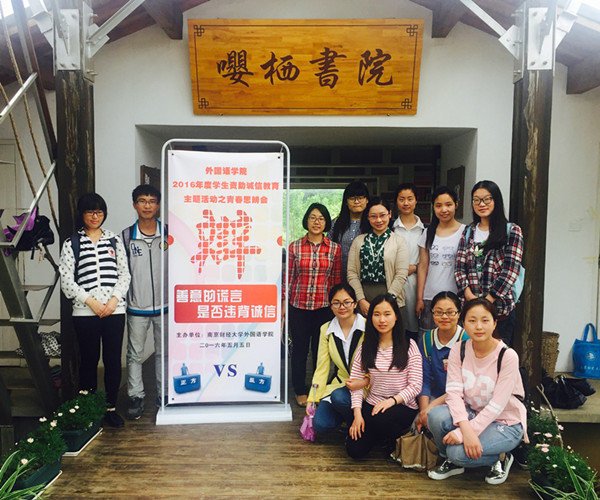 5月5日,51吃瓜app组织部分申请助学贷款的同学,来到栖霞区桦墅村嘤栖书院,举办诚信主题教育青春思辨会和诚信教育签名活动。院党委副书记李慕原、学工办主任薛桂芳参加活动。