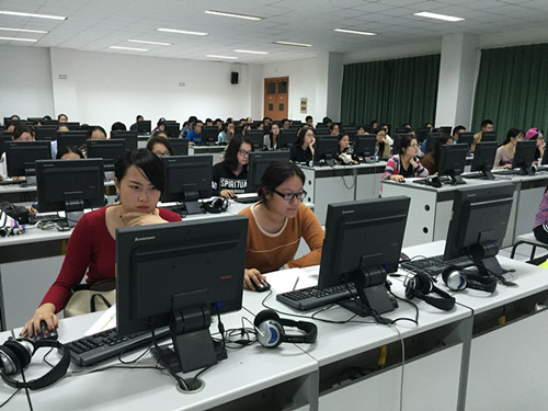 英语阅读大赛是今年的新增赛事,从“读以明己”、“读以察世”、“读以启思”和“读以言志”四个部分来考查、训练与展现参赛学生的英语水平。10月7日晚,比赛在教学楼的五个微机教室中同时举行。今年首次举办阅读比赛,就吸引了来自全校的近四百名同学报名参赛,按照大赛赛事要求,结合报名学生比例,有40名同学分获大赛的特、一、二、三等奖。