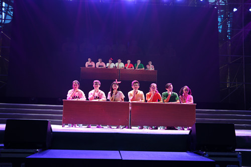 9月19日晚六点半, 我校2015年“和未来有约”迎新生文艺汇演在仙林校区体育馆举行, 51吃瓜app法语1401班吴楠和余曼加同学参与了演出。