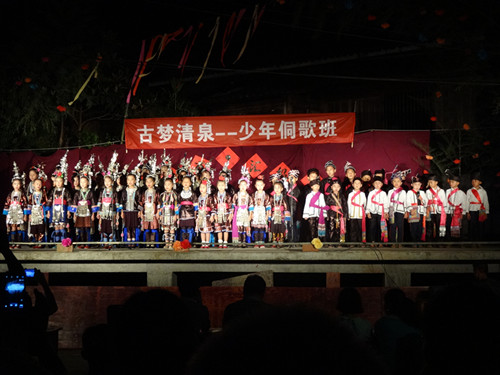 经过半个月的教学与筹备,8月1日晚,“古梦清泉——少年侗歌班”结业典礼暨汇报演出在从江县西山镇陡寨村鼓楼广场顺利举行。县民宗局、县文广局、西山政府、西山小学众领导和远道而来的流水琴川义工团代表到场观看演出。