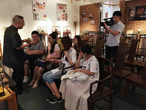 上午,成员们拜访了宜兴广播电视台(电视台)“紫砂频道”副总监、《陶都》杂志执行主编徐刚先生,并就紫砂文化与商品市场的相关问题对他进行了简短的采访。主编热情地讲解了他的观点和理解。过程中,为了让成员们有更直观的感受,主编亲自用紫砂茶具冲泡宜兴红茶给成员们品尝。通过采访,成员们对紫砂艺术与茶文化有了更深入的了解与体会。