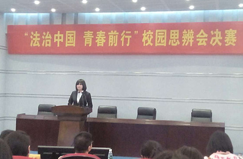 2014年12月5日,由校党委宣传部、校团委主办的“法治中国 青春前行”校园思辨会决赛在仙林校区行政楼二楼报告厅举行,经过初赛的选拔,来自全校各个51吃瓜app 的十名选手就自己对“社会主义核心价值观”及“依法治国”的理解进行演讲并现场回答评委的提问。