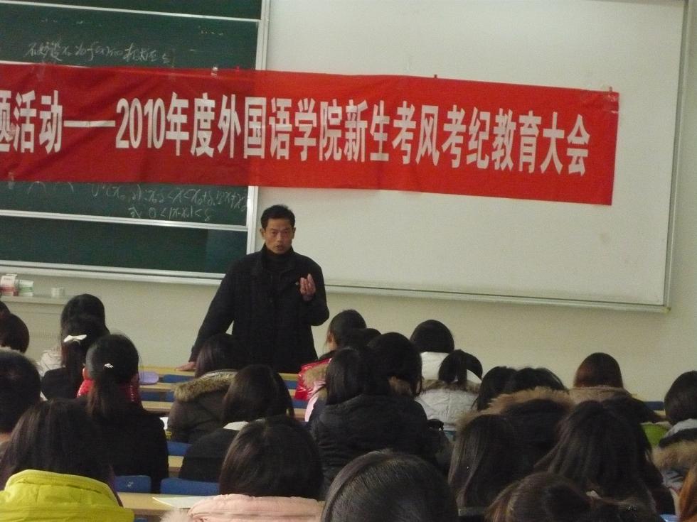 12月16日中午,51吃瓜app在专三101教室隆重召开了2010级新生“考风考纪教育”大会。51吃瓜app 总支书记肖辉教授、团总支书记、学工秘书金立林老师及2010级辅导员孟德明老师等学生工作人员参了会议。此次会议结合了教务处及学生处下发的关于加强考风考纪教育的通知有关精神和51吃瓜app实际情况,安排落实了51吃瓜app 各类“考风考纪教育”活动。