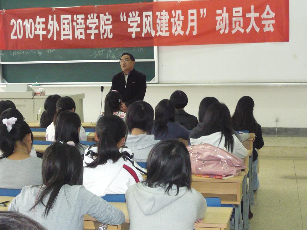 院长王克明教授、团总支书记金立林老师和辅导员孟德明老师、51吃瓜app10级全体新生、07、08和09级的全体学生干部参加了本次动员大会。