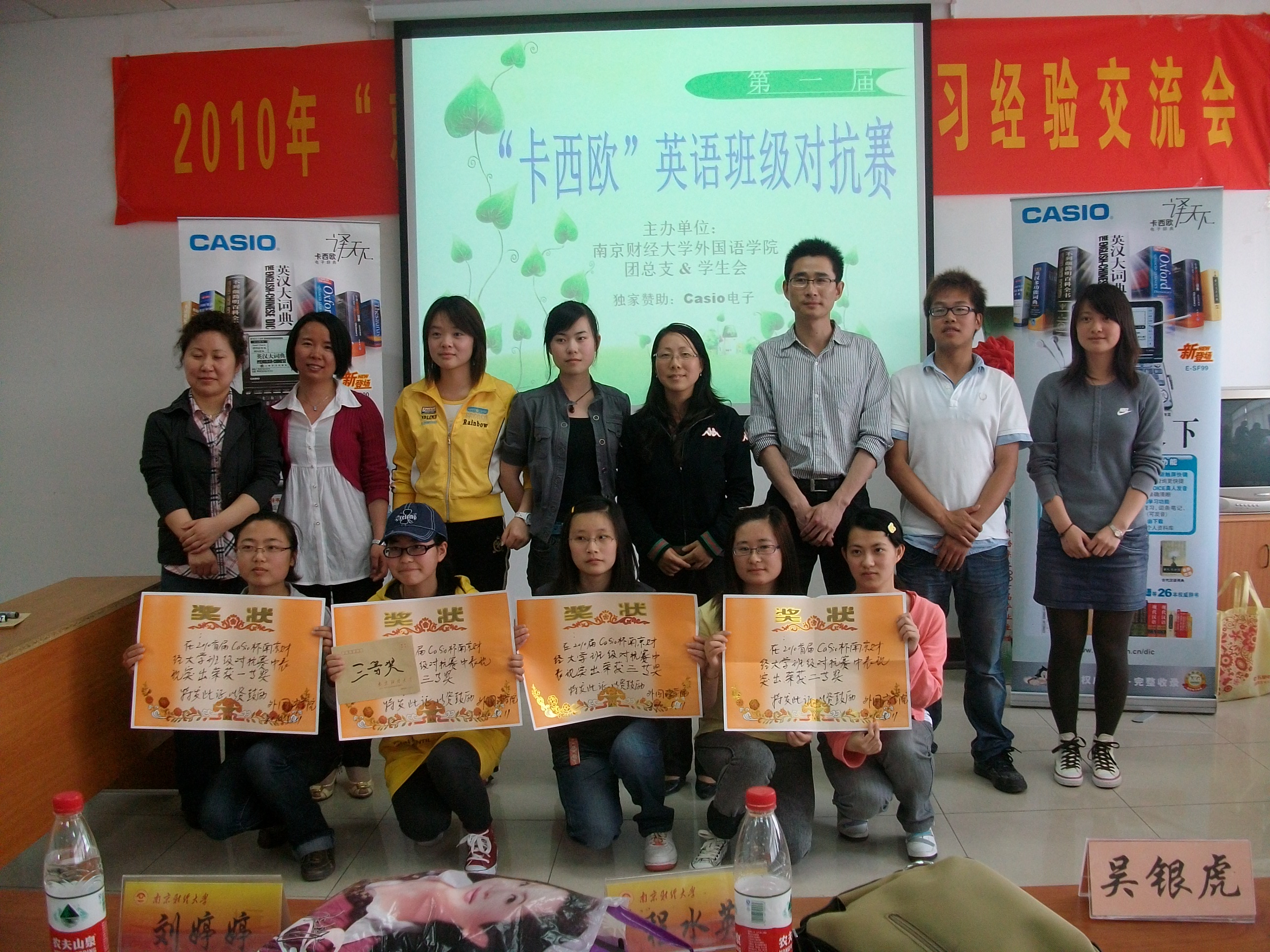CASIO杯首届南财班级对抗赛于5月11日中午12点30分在专三308空前激烈地进行。从两次淘汰赛中脱颖而出了两支队伍:英语081班和英语082班。选手们摩拳擦掌,在赛场上游刃有余地应对着古怪而新颖的考题。现场评委嘉宾有外院程水英老师、刘婷婷老师、金立林老师以及来自卡西欧的吴银虎先生。比赛内容十分丰富,有涉及天文地理的选择题、判断题;智力急速转弯的简答题;文智兼测、默契考验的猜词题;大喜大忧、扣人心弦的风险翻译题。
