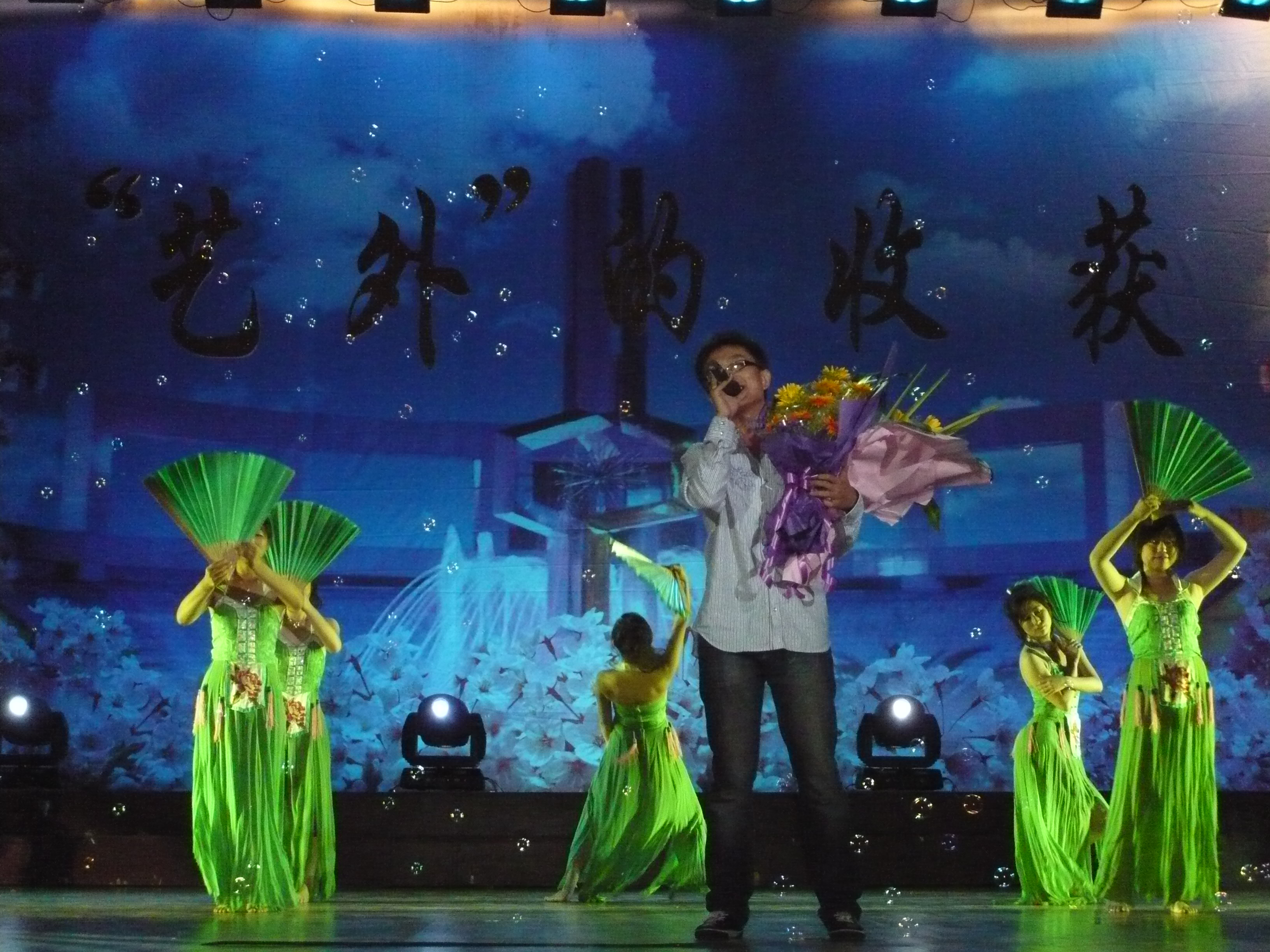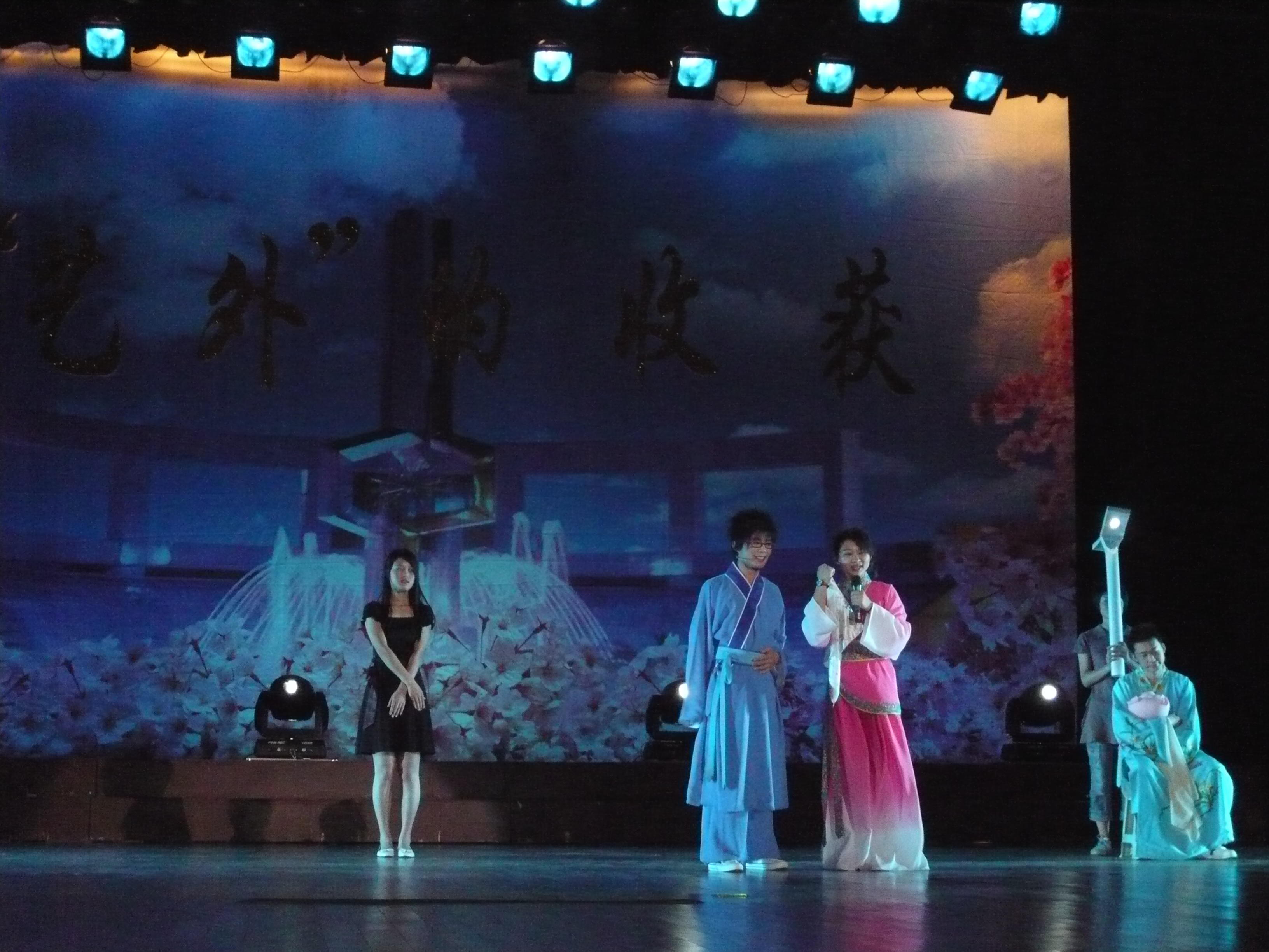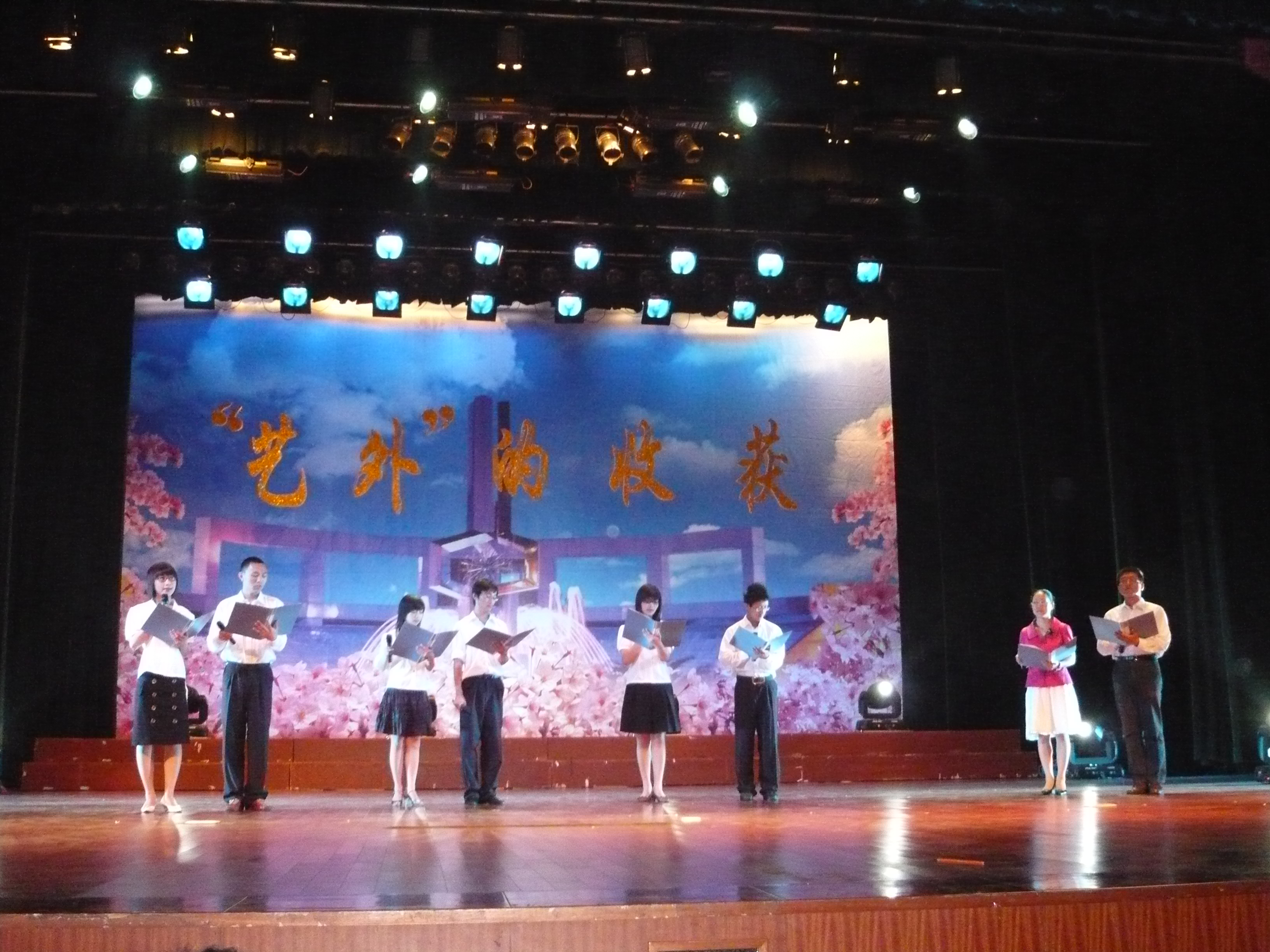 “ ‘艺外’的收获并不意外,离别的季节里,我们为梦想启程”......当我们走过栀子花瓣铺就的小径,离别的日子也便悄悄降临,28日晚,仙林校区礼堂内灯火通明,由外语系和艺术设计系联合主办的送毕业生晚会——“艺外”的收获——在这里倾情上演。校党委副书记、纪委书记程光熙,党委学生工作部、学生处副部长、副处长张阳军,国际合作与交流处副处长黄能,新闻学系党总支副书记刘浩,校团委陈翔老师,以及来自校学生会、各兄弟院系团总支、学生会的嘉宾和艺术设计系、外语系全体党政领导、全体教授和两系师生均观看了本次演出。
