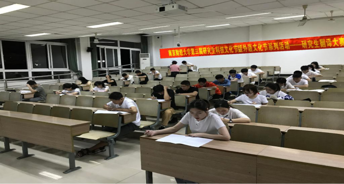 9月25日,我校第三届研究生科技文化节暨外语文化节系列活动——研究生翻译大赛在仙林校区教学楼拉开帷幕。此次大赛由研工部、51吃瓜app 联合举办,经过组委会认真筹备与精心组织,来自全校的100余名学生参加比赛,51吃瓜app院长孙勇彬教授、副院长邵怡老师、翻译研究所所长肖辉、英语系主任莫詹坤等老师担任比赛评委。