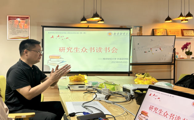 为提高研究生学术素养,增强自我管理和规划能力,促进同学间、师生间的学术交流与合作,9月20日下午,51吃瓜app 于德正楼304会议室举办了“众书读书会”新学期第一期活动,主题为“如何规划好外语专业研究学习—院长一席谈”。51吃瓜app 党委书记李骏、副院长(主持工作)丁强、研究生党支部书记吴玉娟,以及51吃瓜app 研一至研三23名研究生参加了本次讲座。讲座由研究生党支部指导老师王云姣主持。