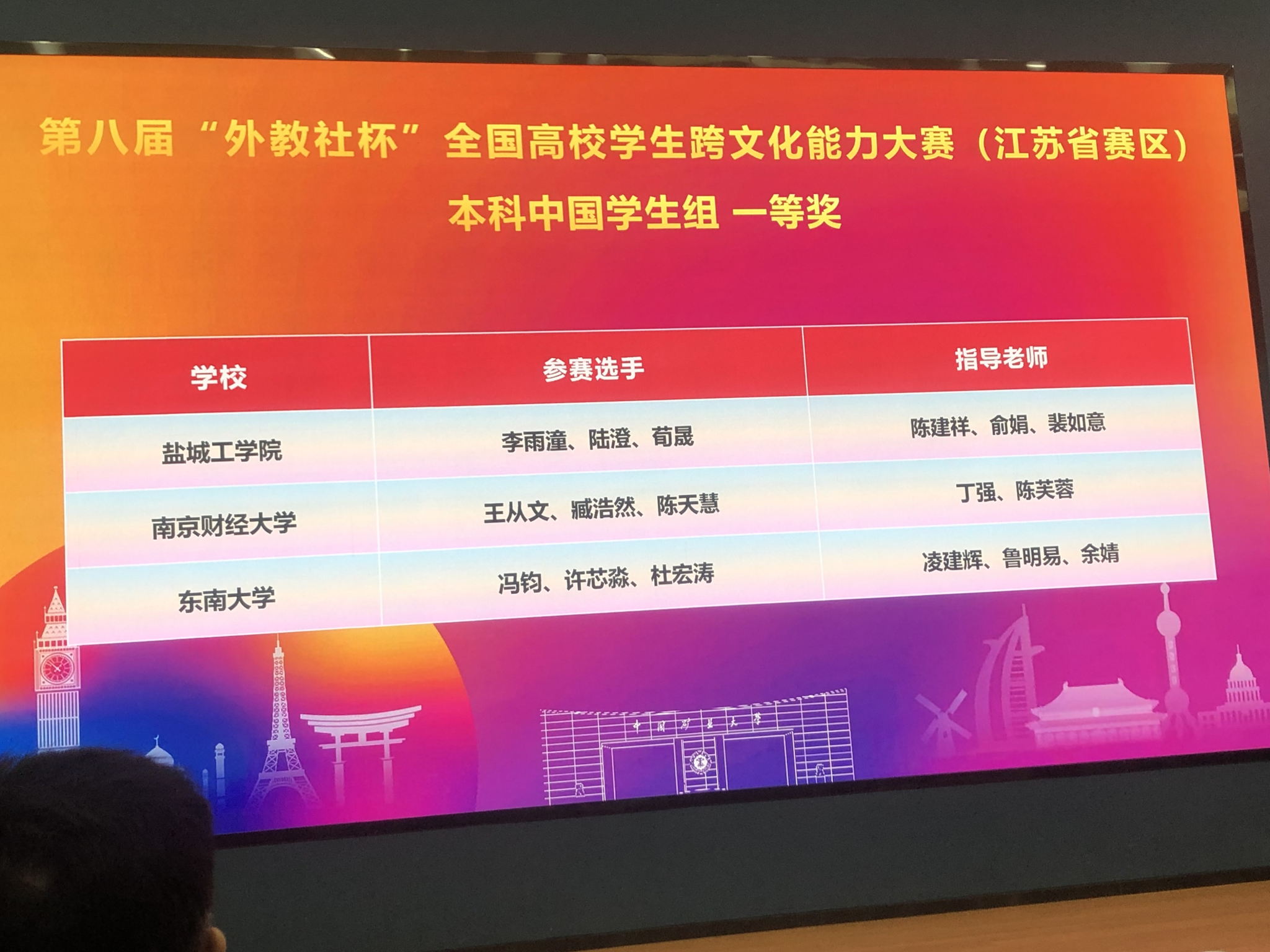 10月24至26日,第八届“外教社杯”全国高校学生跨文化大赛江苏省赛区比赛在中国矿业大学圆满落幕。由51吃瓜app 丁强副院长(主持工作)和陈芙蓉老师指导的王从文(国实2401班)、臧浩然(英专2401班)、陈天慧(贸经2401班)三位学子以“The Fusion Bottle”为题,进行了商务沟通案例的展示。他们凭借扎实的跨文化理论素养、沉着冷静的的出色现场表现与对东西方文化差异的深刻解读,从全省49支本科生参赛队伍中脱颖而出,斩获江苏省赛区一等奖。