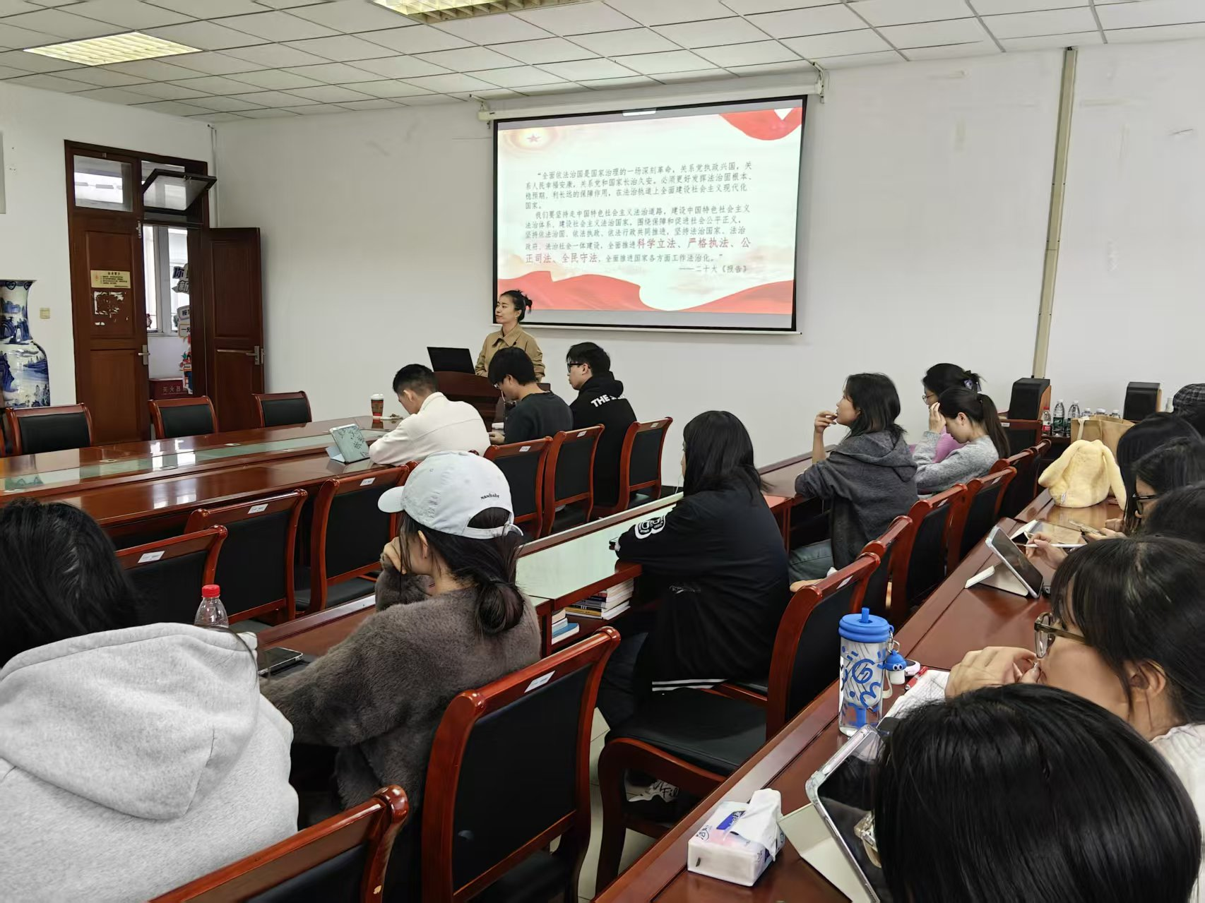 党课伊始,郭馥宁老师通过几组数据展示了近几年的违法案件数量及增长幅度,案例数量的减少、增长幅度的降低得益于我国的法律在维护社会稳定中发挥的重要最用。