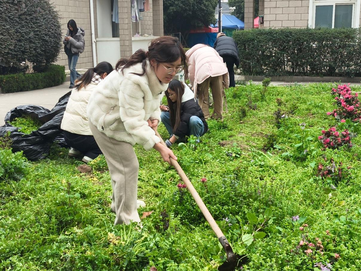 与此同时,志愿者们还开展了花坛种花美化行动,大家松土、栽苗、浇水、培土,动作娴熟又认真,将一株株饱含生机的花苗栽入花坛,用双手为校园与社区添上一抹鲜亮的春色。从楼道清扫的细致入微,到种花护绿的用心付出,每一项行动都彰显着青年学子的责任与担当,志愿者们不怕脏、不怕累,用实际行动诠释着雷锋精神的时代内涵,让奉献之风吹遍校园角落。