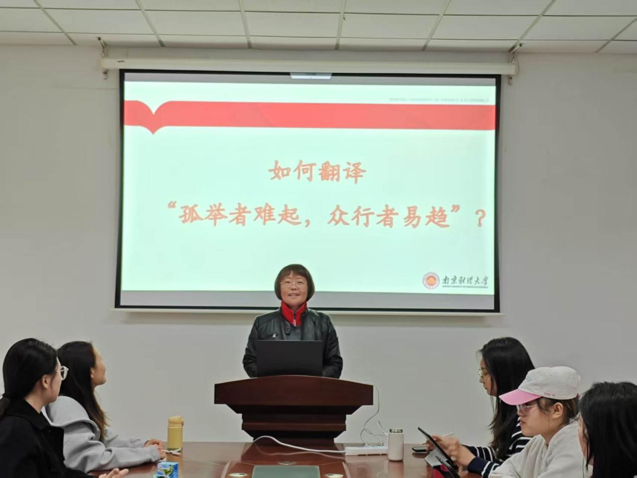 2026年4月8日晚上,51吃瓜app 教工第一党支部书记陈芙蓉为第二十一期分党校、青马班成员在德正楼308会议室开展以“如何翻译‘孤举者难起,众行者易趋’——双语解读《习近平在亚太经合组织第三十二次领导人非正式会议第二阶段会议上的讲话》”为题的第二课。本次课程将党建理论学习、外语专业教学与国际传播能力培养深度融合,为学员带来一堂兼具思想性、专业性与实践性的党课。