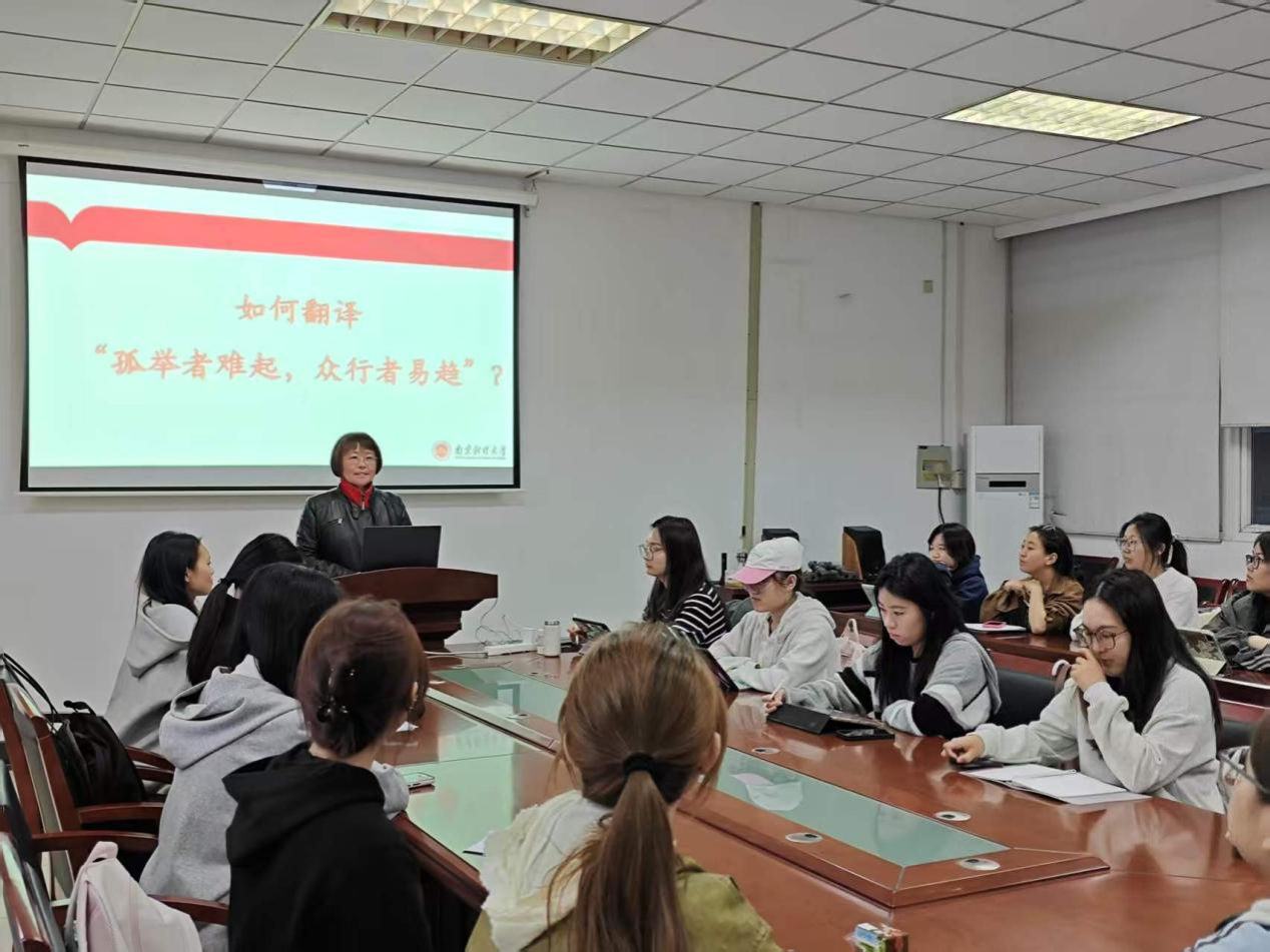 授课过程中,陈芙蓉老师结合自身在学科竞赛、指导学生备赛的实践经历展开分享。“外研社·国才杯”是一项高水平赛事,权威双语材料、政府白皮书等是核心备考内容,2025年曾指导学生一路过关斩将,斩获全国金奖亚军的优异成绩;同时,学院团队在外教社全国高校学生跨文化能力大赛中荣获一等奖,创下学校历史最佳成绩。这些实践充分证明,政治话语翻译能力是外语学子核心竞争力,也是讲好中国故事的关键支撑。