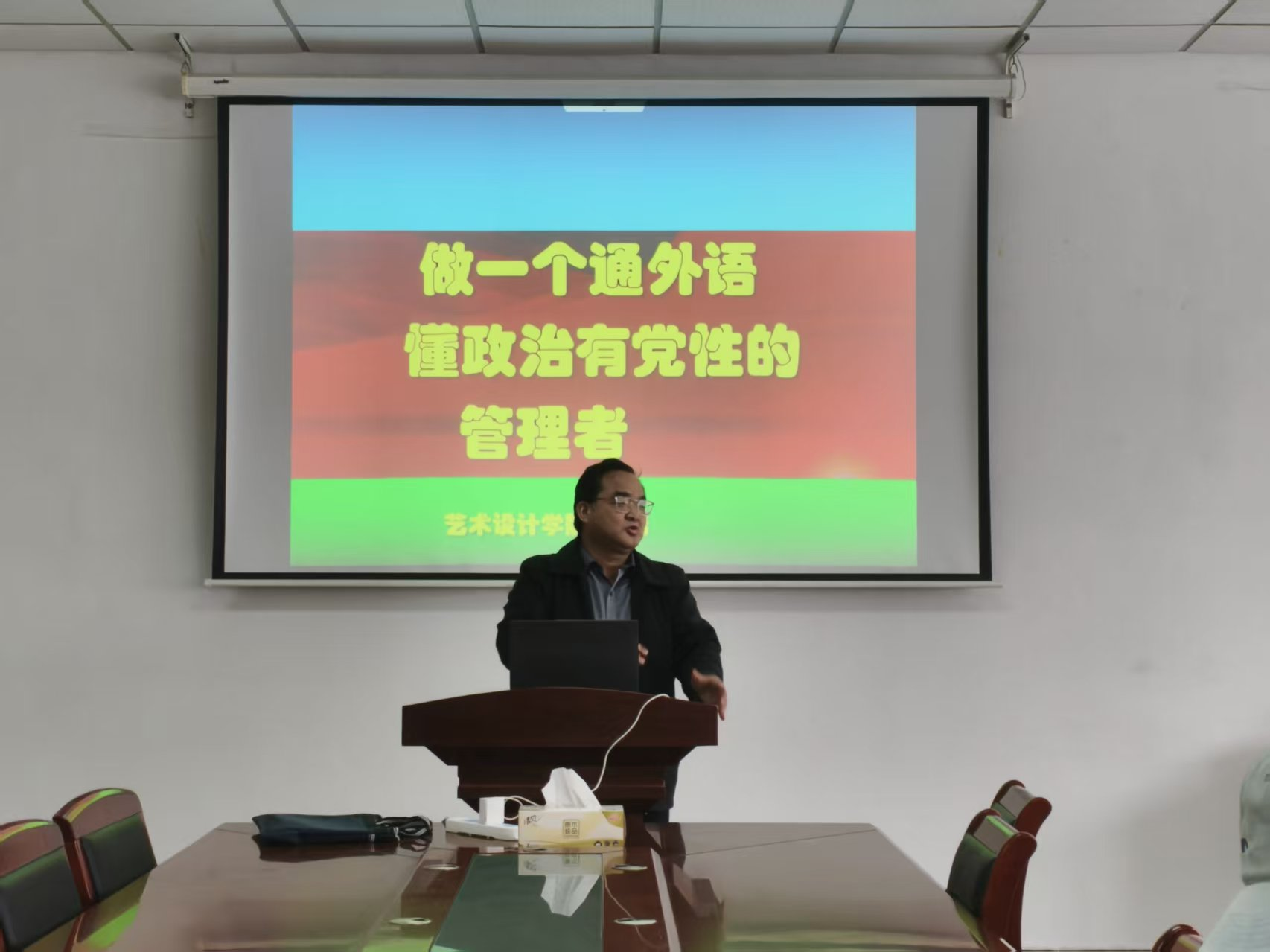 4月14日中午,51吃瓜app 邀请了艺术设计学院党委书记刘浩为第二十一期分党校、青年马克思主义者培养工程大学生骨干培训班授课。刘浩书记以“做一个通外语、懂政治、有党性的管理者”为题,结合自身在51吃瓜app 的工作经历,为青马班学员带来了一场兼具思想高度、专业深度与实践温度的专题辅导。