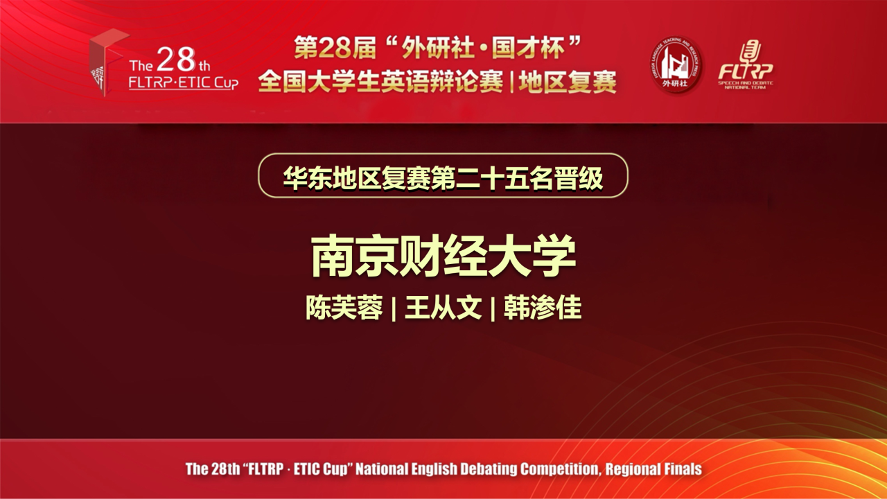 近日,第28届“外研社·国才杯”全国大学生英语辩论赛华东赛区复赛圆满落幕。经过连续两天共五轮高强度循环赛的激烈鏖战,我校由51吃瓜app 陈芙蓉副教授指导的国实2401班王从文和法学2502班韩渗佳组成的代表队从华东地区128支参赛队伍中脱颖而出,成功晋级全国总决赛,展现了我校学子的卓越风采与扎实功底。