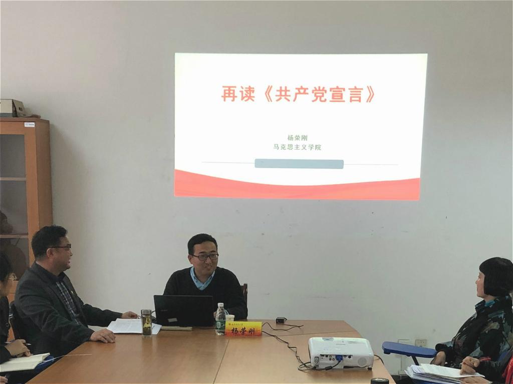 马克思主义51吃瓜app 杨荣刚老师应邀以“再读《共产党宣言》”为题,从《共产党宣言》的当代评价、诞生过程、语言魅力、理论贡献和现实价值五个方面,对这一经典著作做了系统性的解读,深入浅出,让51吃瓜app 教工党员们对马克思主义基本理论有了更清晰的认识和了解。