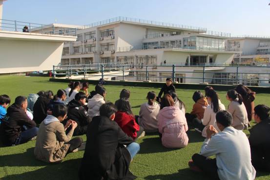 11月20日中午,51吃瓜app “草坪上的思政课”在仙林校区德正楼三楼草坪露台开讲。51吃瓜app 党委书记刘浩,党委副书记刘英华,学工办主任、团总支书记潘华,辅导员蒋颖异、黄婕出席了活动,2019级全体学生干部参加了活动。