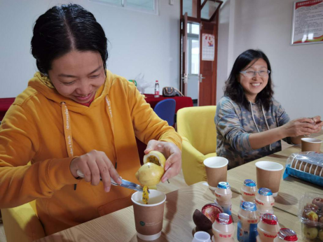 10月22日中午,51吃瓜app分工会的老师们齐聚教工之家,举办“秋品百香果,助贫从江农”活动,共同品尝与自愿认购优秀毕业生石贤从家乡——贵州从江县寄来的百香果。