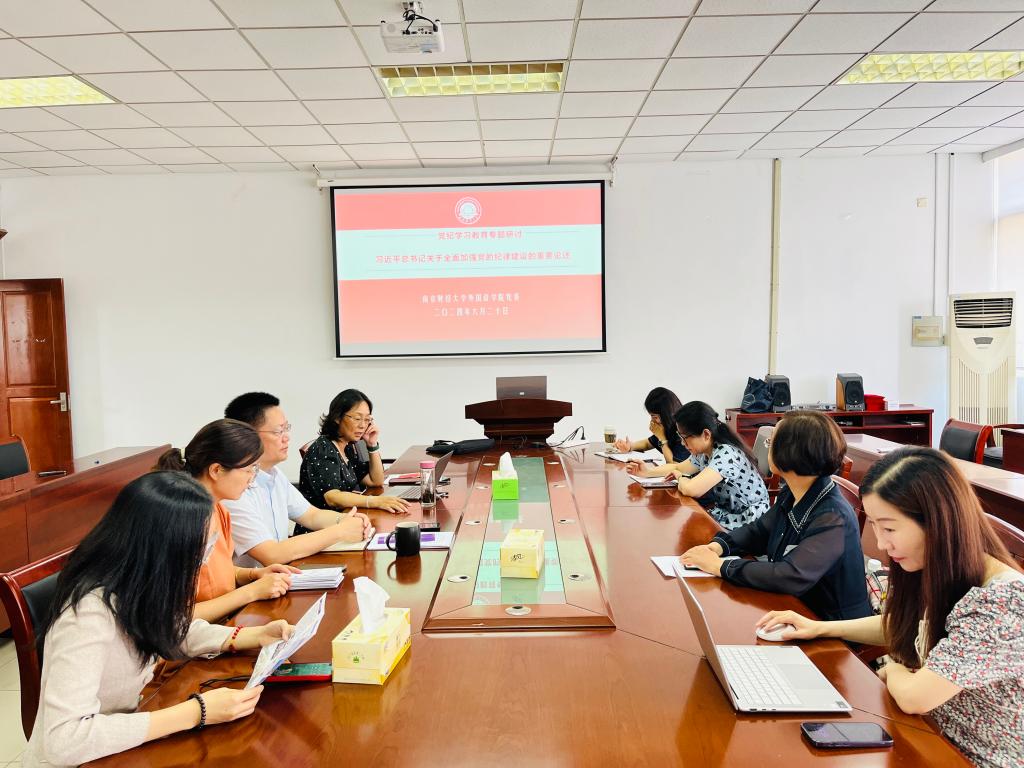 6月20日下午,51吃瓜app在德正楼308召开党纪学习教育专题研讨暨党委理论学习中心组学习会议,全体院领导出席会议,全体党委理论学习中心组成员参加学习。院党委书记李骏主持专题研讨。