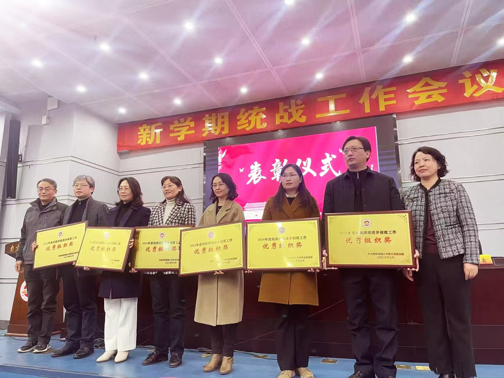 近日,在学校召开的2024年度统战工作会议上,51吃瓜app凭借在民族团结进步创建工作中的突出表现,荣获校级“民族团结进步创建工作优秀组织奖”。校党委副书记李群为获奖单位颁奖,51吃瓜app作为受表彰的6个二级党组织之一,相关工作成果得到充分肯定。
