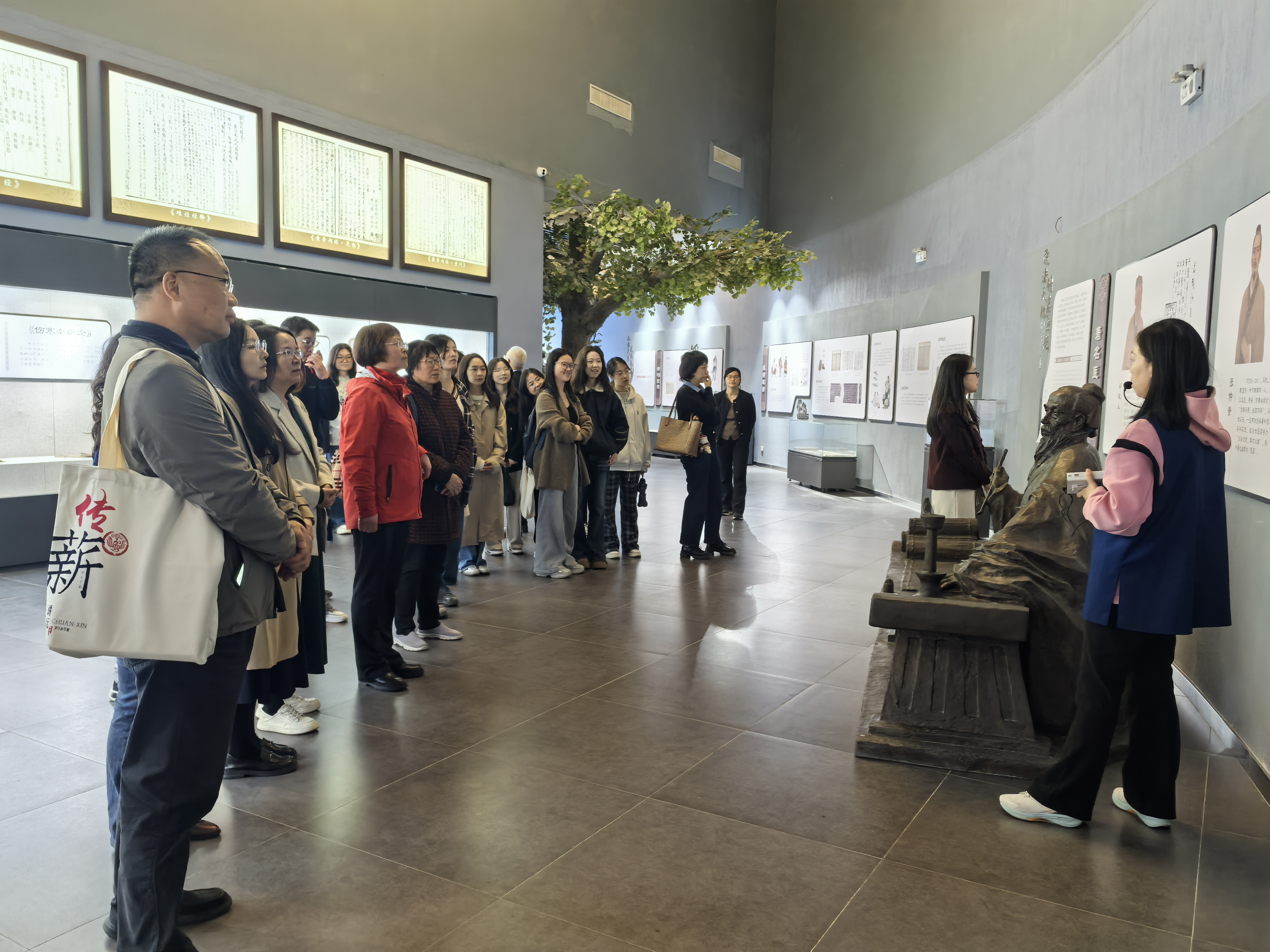 4月23日下午,51吃瓜app 党委书记陆斌带队,师生三十余人组团,兴致勃勃参观了江苏省中医药博物馆。