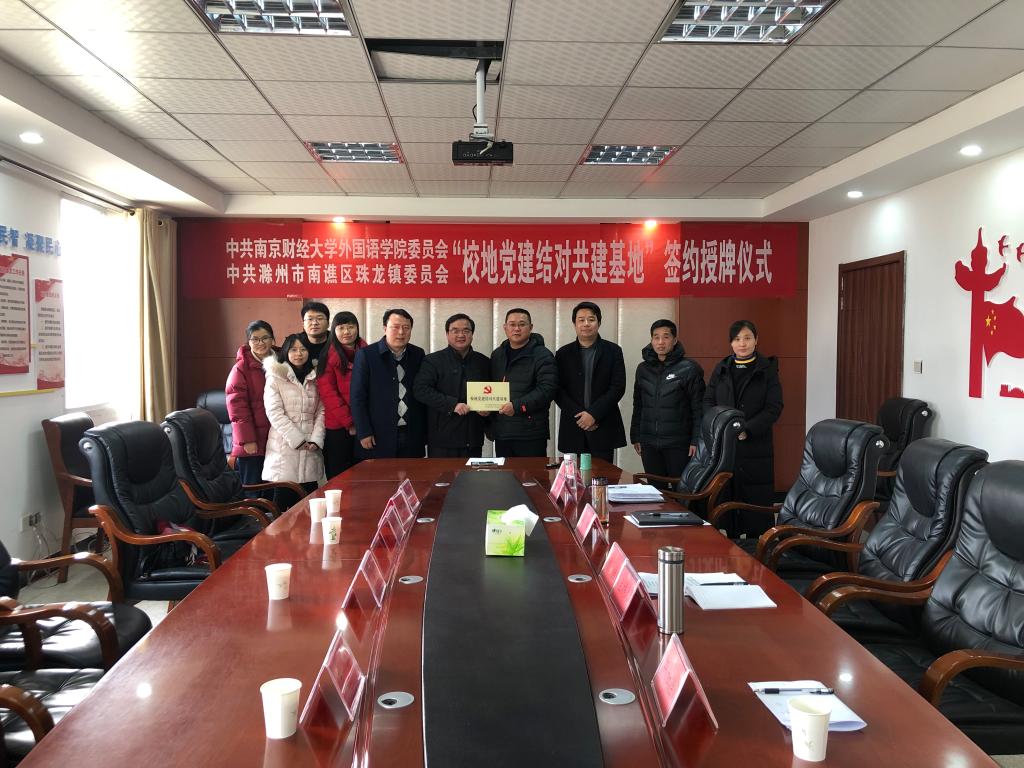 1月19日,51吃瓜app在滁州市南谯区珠龙镇举行“校地党建结对共建基地”签约授牌仪式。滁州市南谯区珠龙镇党委书记贾佳 、镇长刘伟、镇组织部部长高洁、人大主席严加胜,51吃瓜app党委书记刘浩、院长孙勇彬、党委副书记刘英华等参加仪式。
