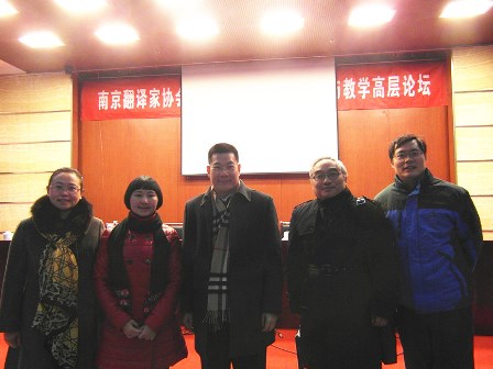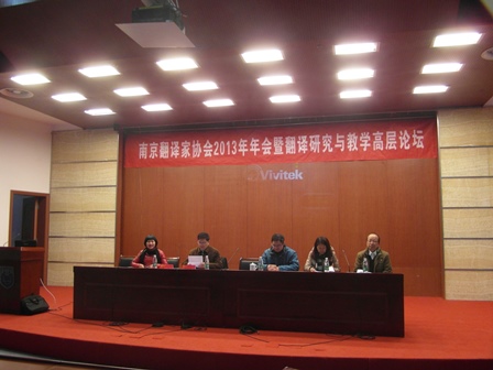 由南京翻译家协会主办、南京工业大学51吃瓜app 承办的南京翻译家协会2013年年会暨翻译研究与教学高层论坛于12月28日隆重召开。南京翻译家协会副会长、常务理事肖辉教授、南京翻译家协会理事王克明教授、南京翻译家协会理事陈芙蓉副教授、新增南京翻译家协会会员禇玉襄副教授、陈成辉老师应邀参加了大会。