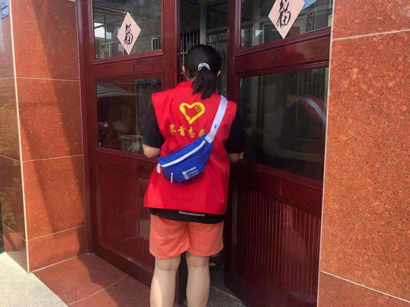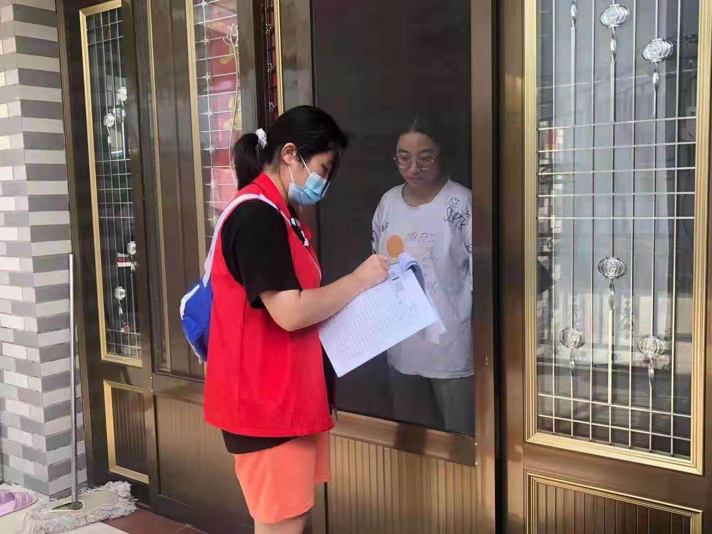 “您好,请保持一米线距离,注意戴好口罩。”“请配合我们做下登记,有没有去过中风险地区?有没有发热咳嗽现象?”“不出门不聚集,要做好防护工作哦。”最近,在扬州市高邮市界首镇,总能看到一个身着红色马甲、斜跨蓝色小包的女孩,她充满活力和干劲,穿梭在大街小巷。